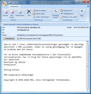Det vil sige at de fortæller dig at din VISA kort er spærret, din PC er dårlig, eller din bestilling på nettet af tøj/rejser/hotelophold mm, er ved at gå galt, og at du kan rette det ved at følge en guide.